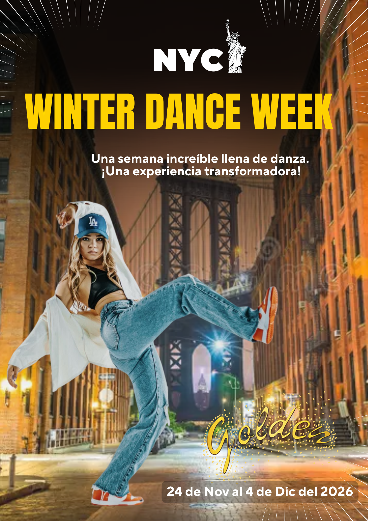 Si eres parte de Golden Dance and Cheer Academy, no querrás perderte esta increíble oportunidad. Únete a nosotras en esta aventura y descubre todo lo que Nueva York tiene para ofrecerte como bailarina y artista. ¡Nos vemos en la Gran Manzana!
