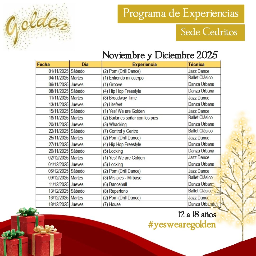 A continuación, encontrarás la programación planteada para nuestro programa de experiencia.
